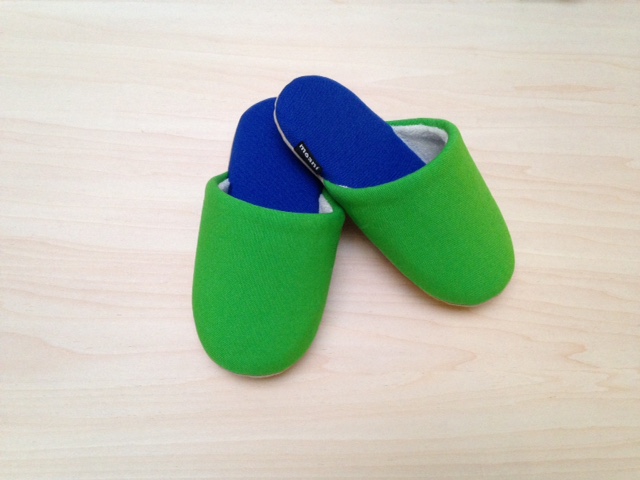 鮮やかなツートンカラーのスリッパは